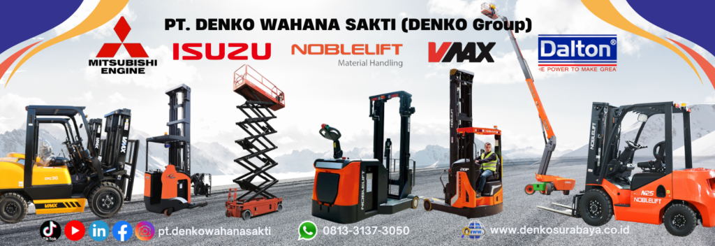Kami Menjadi Perusahaan Terdepan Sekaligus Pemegang Merk Tunggal Noblelift, VMAX dalam Menjual Berbagai Produk Material Handling Equipment Seperti Forklift Diesel Mitsubishi S4S Japan, Forklift Diesel Isuzu C240 Japan, Forklift Electric, Scissor Lift, Boom Lift, Hand Pallet Truck, Manual Stacker, Full Electric Stacker, Electric Pallet Truck, Aluminium Work Platform/ Tangga Electric, Drum Porter, Handtruck Prestar, Drum Handler, Drum Tipper, Drum Gripper, Hand Pallet Scale , Forklift LPG, Vertical Lift, Handstacker Full Electric, Lift Table, Turbine Ventilator, Semi Electric Stacker, Handlift, Pallet Mesh, Gerobak Dorong dan berbagai Macam Roda (Caster)